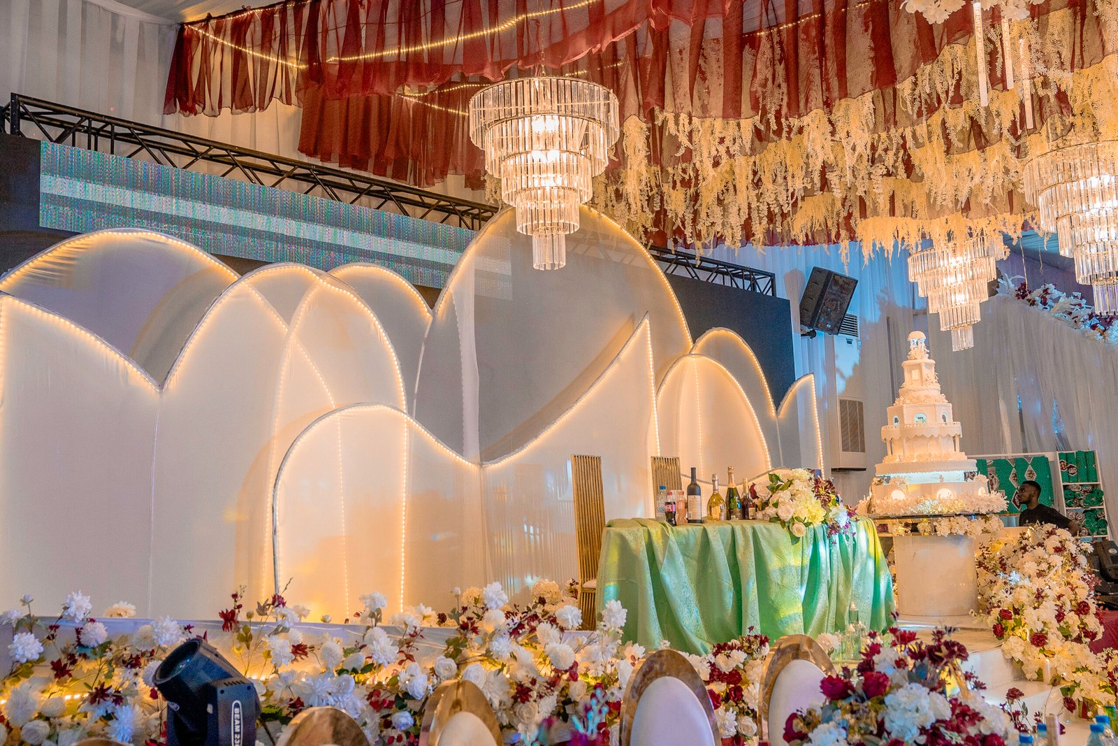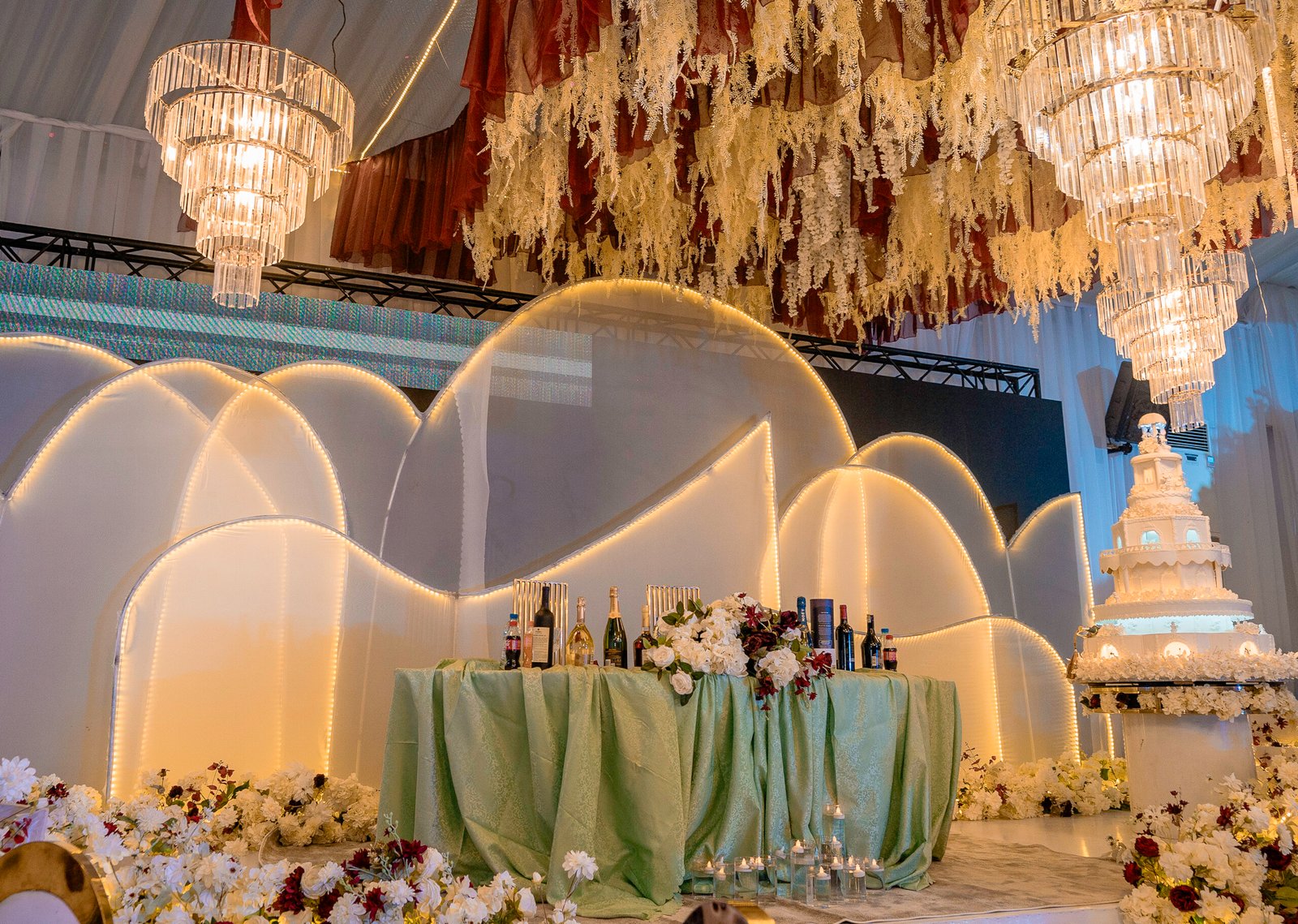 We design stunning stages, floral backdrops, table setups, and full venue transformations. Every space is styled with elegance and precision to create a breathtaking experience.